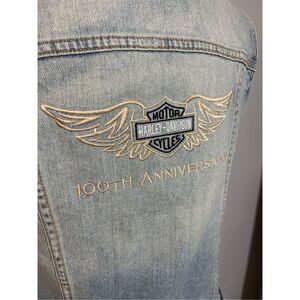 GAP 1969 denim vest with a bit of stretch. Custom embroidered with Harley-Davidson 100th Anniversary. Great condition!