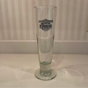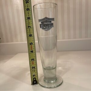 Harley-Davidson Tall Glass Beer Stein 14 Oz. 9 1/4” Tall Metal Logo Plate Pilsner Lager Ale