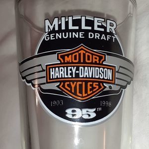 95th anniversary glass from Miller Genuine Draft & Harley-Davidson. Its got the bar & shield logo.