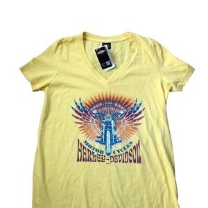 Harley~Davidson 3D V-neck Tee Yellow Sz.XL US 129 Dragon Tallassea TN Freedom