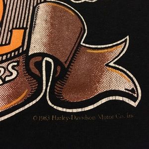 50th anniversary Sturgis rally tee from 1990. Printed on Harley-Davidson brand tee. Put through a mineral wash for that added soft, vintage look and feel. Model wears size medium. Also cute paired back to cutoff shorts with the sleeves rolled up! 19" shoulder to shoulder. 19" pit to bottom.