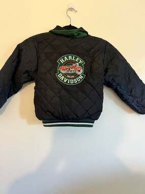 Good pre-owned condition with some light visible wear to the fabrics consistent with age. Perfect for young motorcycle enthusiasts or collectors of vintage Harley gear.