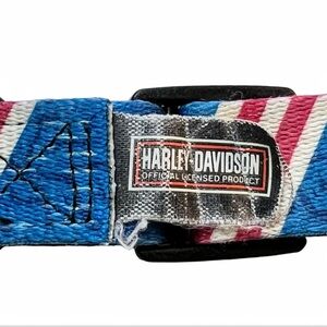 Harley-Davidson Adjustable Blue and Red Print Nylon Dog Collar Size 18”- 26"