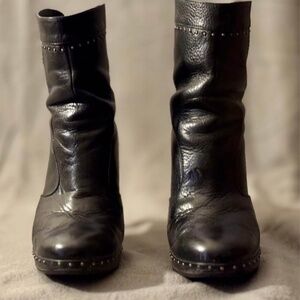 Harley-Davidson fashion boots 4.25" stiletto heels with 1/2" platform. Total height:8.25" Shaft: 4.25" Size US 8 1/2 Full grain leather, locking zipper, gold stud accents.