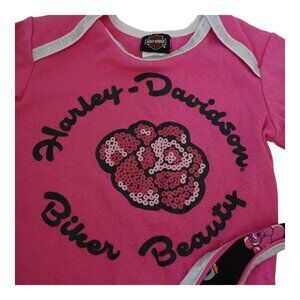 Harley-Davidson Baby Girl's Pink Long Sleeve Bodysuit & Bib Set 18M