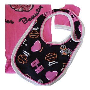 Harley-Davidson baby girl's long sleeve bodysuit and bib set in a charming pink color. Ideal for adding style and comfort to your little one's wardrobe. American Style.