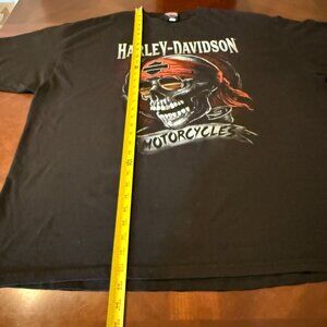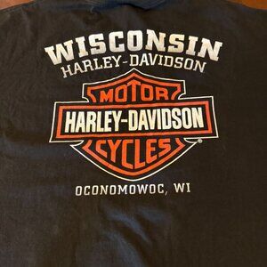 KEYWORDS: Harley t-shirt, biker skull shirt, Gildan tee, black cotton shirt, motorcycle apparel, USA made shirt, biker fashion, Harley Davidson, men's 3XL shirt, Wisconsin t-shirt, skull graphic tee, casual wear, cotton t-shirt