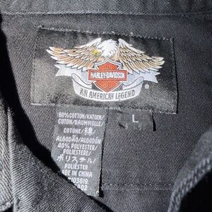 Stylish black shirt with iconic Harley-Davidson logo. Ideal for casual wear.