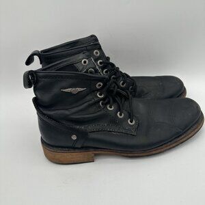 Harley-Davidson Black Leather Distressed Motorcycle Boots Mens Lace Up