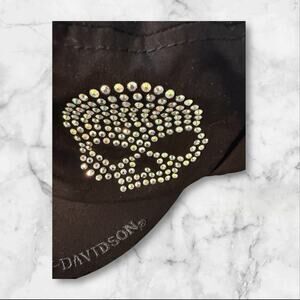 Harley-Davidson Black Military Cap Hat Rhinestone Skull Logo Women’s Biker