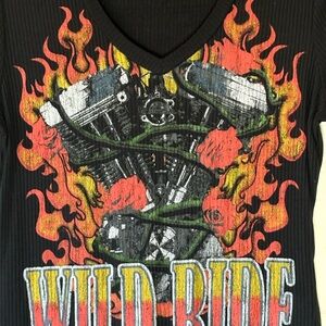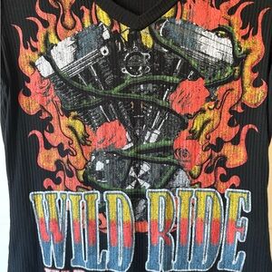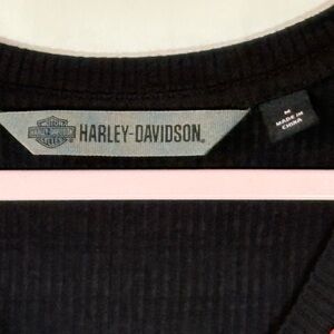 Classic black ribbed top. Features Harley-Davidson branding on the label.