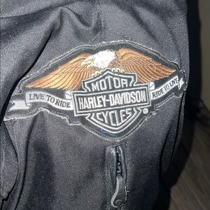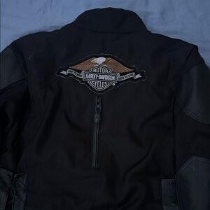 Sleek black jacket with iconic Harley-Davidson emblem. Ideal for riders.