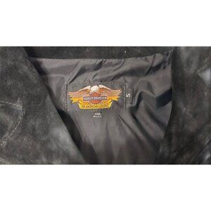 Harley-Davidson Black Suede Fringe Leather Vest, Sz Small, Biker Retro Rider