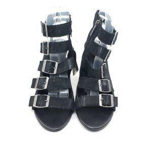 Harley-Davidson Black Suede Strappy Buckle Heels Open Toe Sandals Womens 10