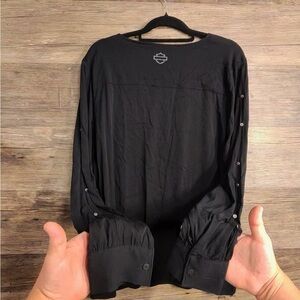 Harley-Davidson Black V-Neck Open Arm Blouse