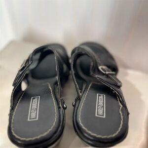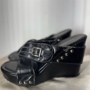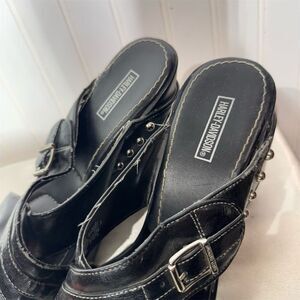 Harley-Davidson Black Wedge Slide Sandals 8.5M Studded Buckle Platform Biker Y2K