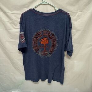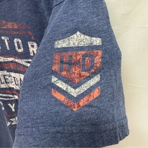 Embrace the classic Harley-Davidson spirit with this blue short sleeve tee, featuring a vintage-style logo that exudes a timeless appeal. Crafted for comfort, this shirt is perfect for casual wear, showcasing the iconic bar and shield design in a distressed finish. In good used condition. No holes or stains. From smoke free home.