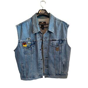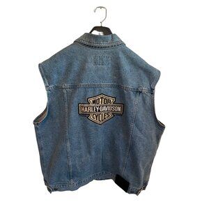 Harley-Davidson Blue Jean Denim Motorcycle Vintage Vest Men's Size XL 100% Cotto