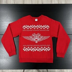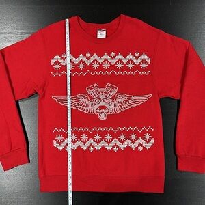 Harley-Davidson Christmas Sweater Style Crewneck Sweatshirt in size Small. Minor signs of wear. One mark on the bottom trim, shown in photos, happened during the printing process. No other visible signs of use or wear. Please refer to photos for exact size and details.