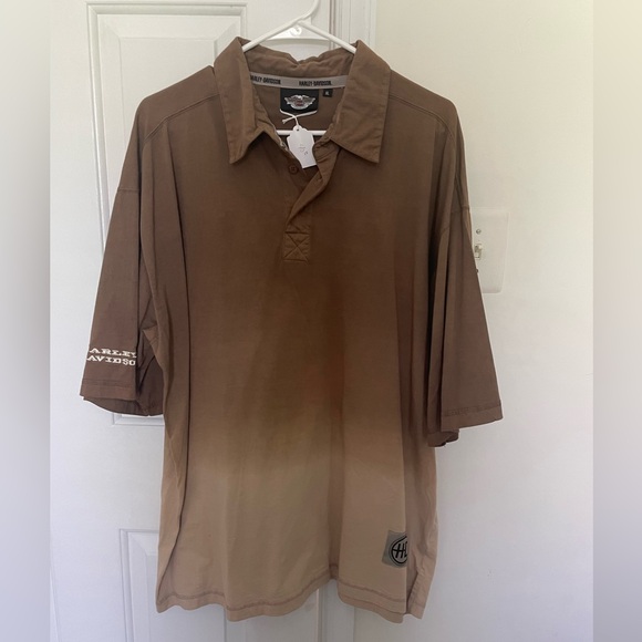 Brown ombré Harley Davidson collared T-shirt is 100% cotton. Pristine condition.