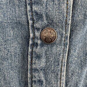 Condition: Good pre-owned condition. I area of discoloration due to a personalized embroidery being removed. Light wear throughout, no major flaws or stains. All buttons intact. Please review photos for full details.