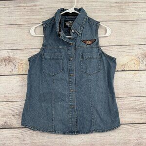 Harley-Davidson Denim Vest Women's Small Blue Sleeveless Biker Button Up