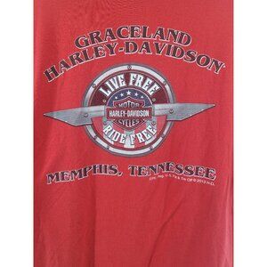 This Harley-Davidson red t-shirt offers a classic motorcycle style with its bold graphics. Made from 100% cotton, it ensures comfort and durability. The shirt is designed for enthusiasts, featuring a vintage 1903 logo on the front and a Memphis, Tennessee print on the back, showcasing the iconic brand's legacy.