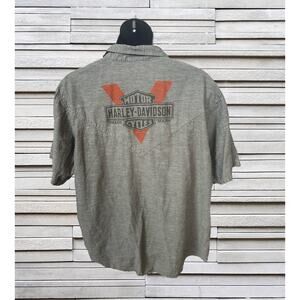 This is a Harley-Davidson gray button up shirt in size 3X. It's perfect for any Harley enthusiast! The shirt is in great condition and ready to wear.