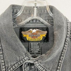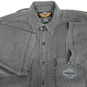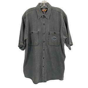 Harley-Davidson Gray Chambray Short Sleeve Button Down Shirt Logo - Mens Large