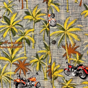 Harley-Davidson Hawaiian Tropical All Over Print Button Down Shirt. Metal Harley Buttons, 100% Cotton. Made in Hawaii. MSRP: $119