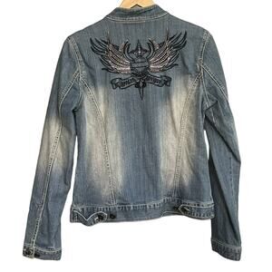 Harley-Davidson Jacket Denim Full Zip Embroidered Womens M