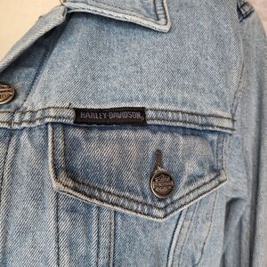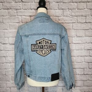 Harley-Davidson Jacket Light Wash Denim Embroidered Logo Classic Style Size M