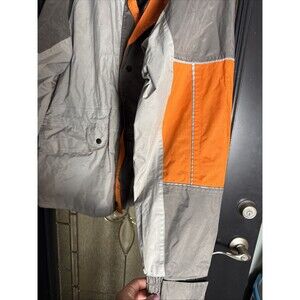Jacket itself is in good condition. Has a few stains(pictured). Missing the hood.