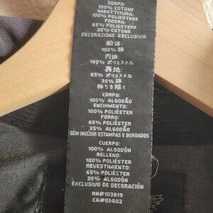Body: 100% cotton. Filling: 100% polyester. Lining: 65% polyester, 35% cotton. Exclusive of decoration.
