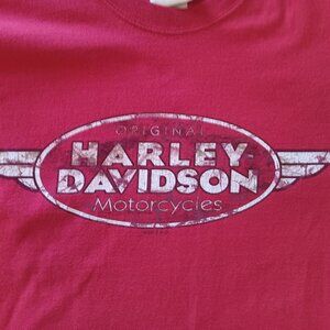 Harley-Davidson men’s red short sleeve t-shirt with bold double-sided graphics.
