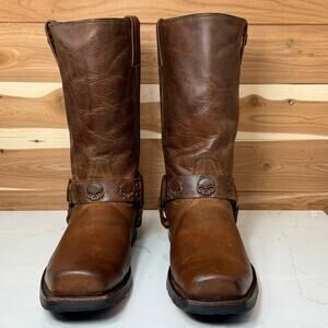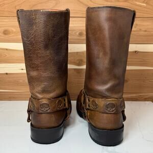 Harley-Davidson Leather Boots Rory 11-Inch Brown Skull D93146 Men's Size 10.5