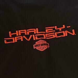 Solid black breathable fabric with orange accents. Central Texas Harley-Davidson. Round Rock, TX. Excellent smoke free condition.