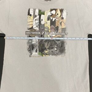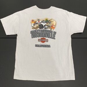 Harley-Davidson Looney Tunes Classics T-Shirt in size Large. Great images with many of the Warner Bros. characters on front and back of shirt. Warner Bros. has since been discontinued from the H-D lineup. Image features many of the beloved characters. Normal, minor signs of wear. Measurements shown in photos. Please refer to photos for exact size, details, and condition.