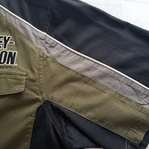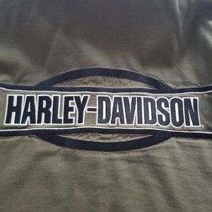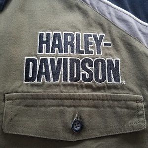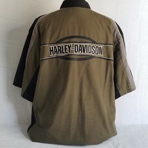 Stylish Harley-Davidson men's shirt in olive and black. Perfect for casual outings or motorcycle rides. Features a classic button-up design with the iconic Harley-Davidson logo.