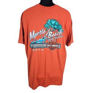 Harley-Davidson Mens Orange Graphic T-Shirt Myrtle Beach South Carolina X-Large