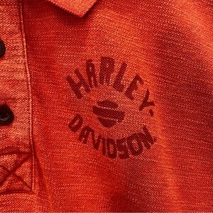 Elevate your casual wardrobe with this Harley-Davidson men's polo shirt. Crafted in a striking tangerine , it offers both style and comfort for everyday wear.