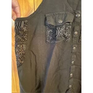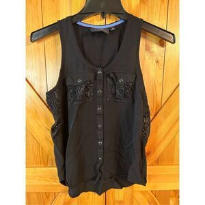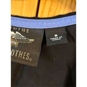 Harley-Davidson Women's Mesh Lace Accent Woven Tank, Snaps Black front pockets size small pit to pit 17” length 21” (4010)