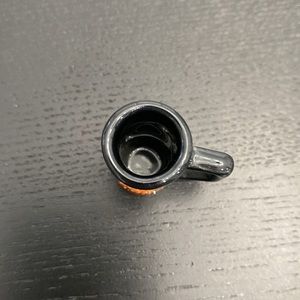 Harley-Davidson Mini Mug. Please refer to measurements for size. Very mini! Beaded orange Willie G. Skull detail. Very cute display or necklace charm.