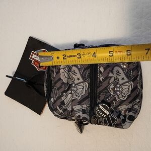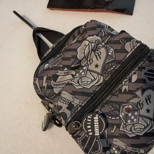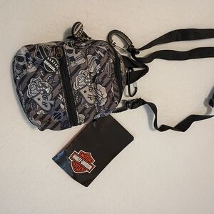 Harley-Davidson Mini bag with grey -Tattoo graphic- Two zip pockets for organization.3 Ways Used: Adjustable strap for shoulder,Clip on,or as belt bag.