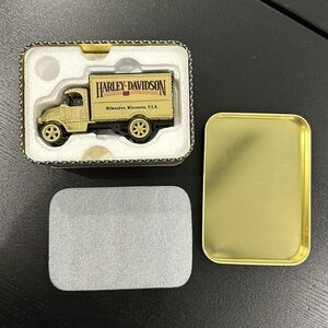 Harley-Davidson Model Car Box Delivery Truck Coin Bank in Tin. Overall great condition. Minor signs of handling. Please refer to photos for exact size, condition, and details.
