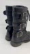 Harley-Davidson, women's riding boots, black leather boots, genuine leather, triple buckle straps, embossed logo, durable rubber sole, lace-up boots, pre-owned boots, women's size 6.5, EU size 37, motorcycle boots, biker boots, adjustable straps, women's footwear, Harley-Davidson boots.