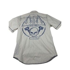 Harley-Davidson Motorcycles Button Shirt Mens M Medium White Embroidered 1903