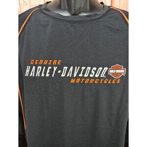 Engineered for riders who demand both style and performance, this Harley-Davidson athletic shirt combines technical functionality with iconic motorcycle brand heritage. Designed with moisture-wicking fabric and strategic ventilation, the shirt provides comfort during high-intensity activities or casual wear. The bold black base with orange accent piping reflects the brand's dynamic spirit, while the embroidered Harley-Davidson logo and Nags Head dealership details add authentic motorcycle culture credibility.