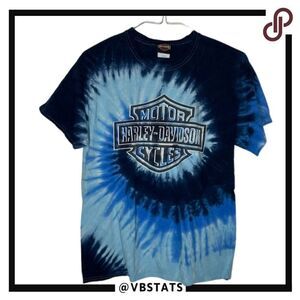 Harley-Davidson Navy and Blue Graphic Design SS Shirt in Size Large (St. Kitts)