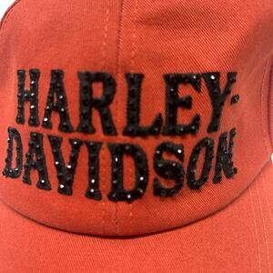 Harley Rhinestone Hat Orange Cap Adjustable Y2K Biker Aesthetic